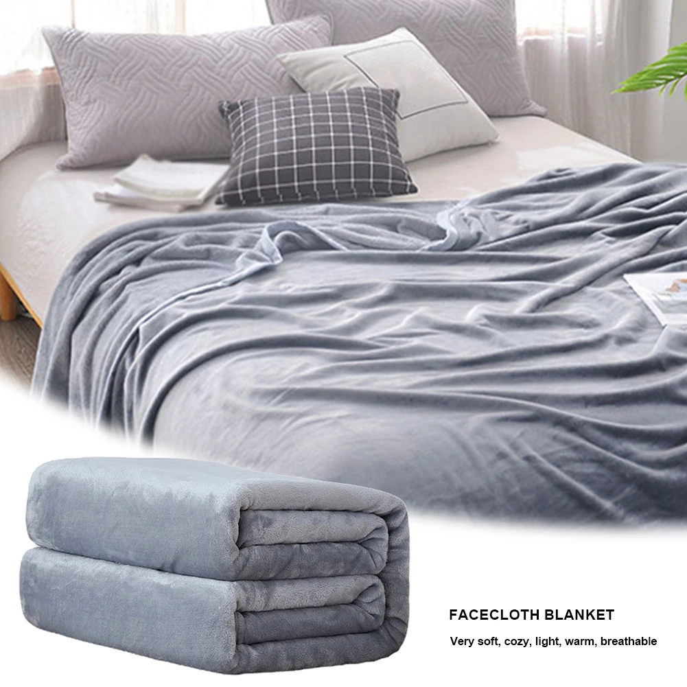 Grey Flannel Fleece Blanket Solid Color Simple Bedspread Blanket Lightweight for Adult Children Home Office