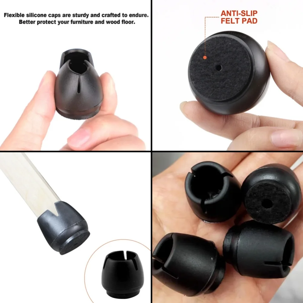 • Flexible silicone caps grip: Furniture legs gently and securely without falling off