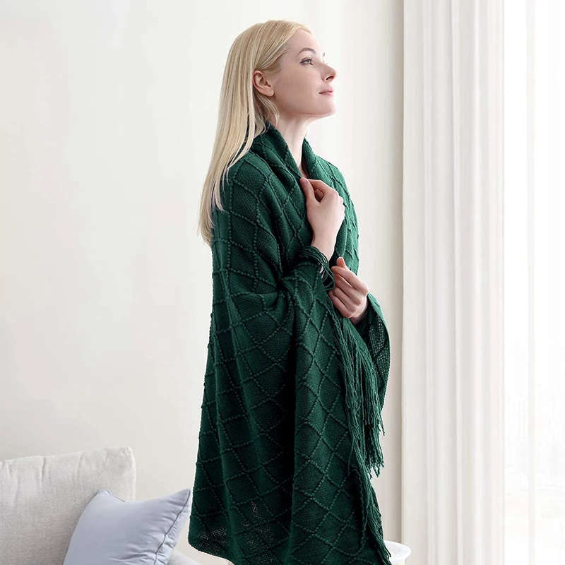 Chritmas Green Blankets Large Knitted Tassel Throw for Bed Chair Sofa Couch Cover All-Season Blanket Home Decor Soft Comfortable