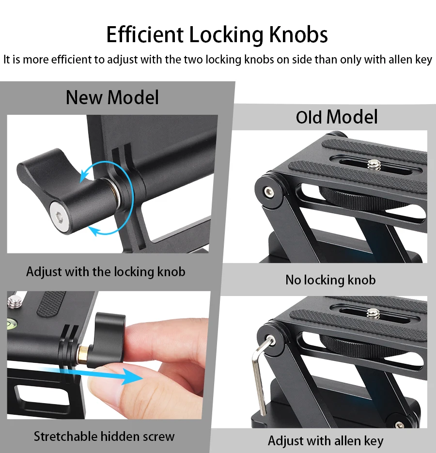 【Upgraded Design】It is more efficient and convenient to adjust with the two locking knobs on joint than only with the allen key, so it can be locked and loosened quickly.